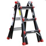 Ngoài những tính năng đã nêu ở trên, còn một đặc điểm mới lạ giúp thang trở nên sản phẩm “biến hình” cực kỳ tinh vi. Nếu bạn cần một giàn giáo nhỏ để sử dụng thì chỉ cần rút thang lồng bên trong ra làm 2 thang. Ở nửa bên ngoài, ta móc chốt khóa vào để cố định chân thang một cách chắc chắn. Dùng một bệ nhôm hoặc một ván gỗ để ở giữa hai chân thang sẽ là một nơi làm việc an toàn. Bạn có thể thoải mái di chuyển và làm việc hiệu quả hơn mà không mất thời gian dịch chuyển thang.
